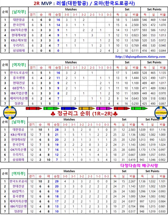 | 55 | 화성 | IBK기업은행 - 한국도로공사 | 0 - 3 | 최다득점 : 모마(도로) 17점 | ||
